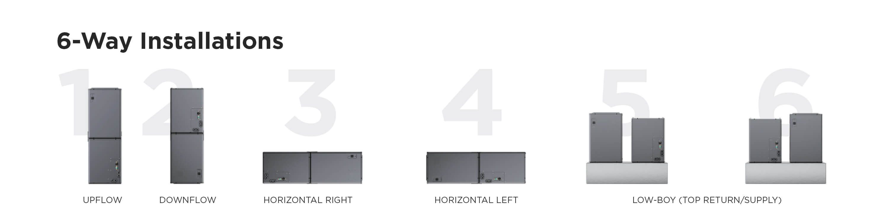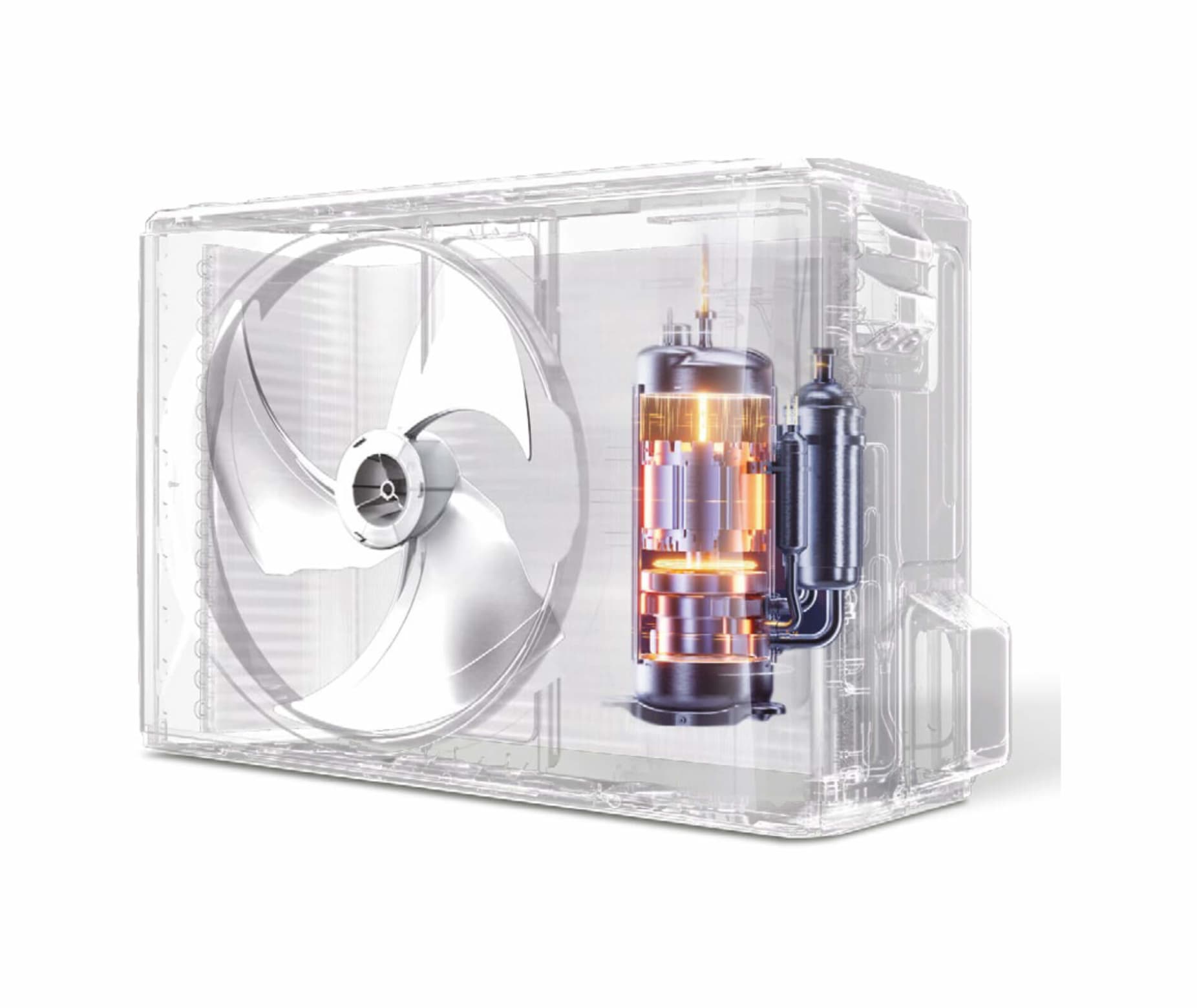 The unit structure with horizontal fan and vertical heat exchanger guarantees more uniform and efficient heat exchanging velocity across the entire heat exchanger surface. When the temperature gets low, the system shows higher heat exchanging efficiency and provides stronger heating output.