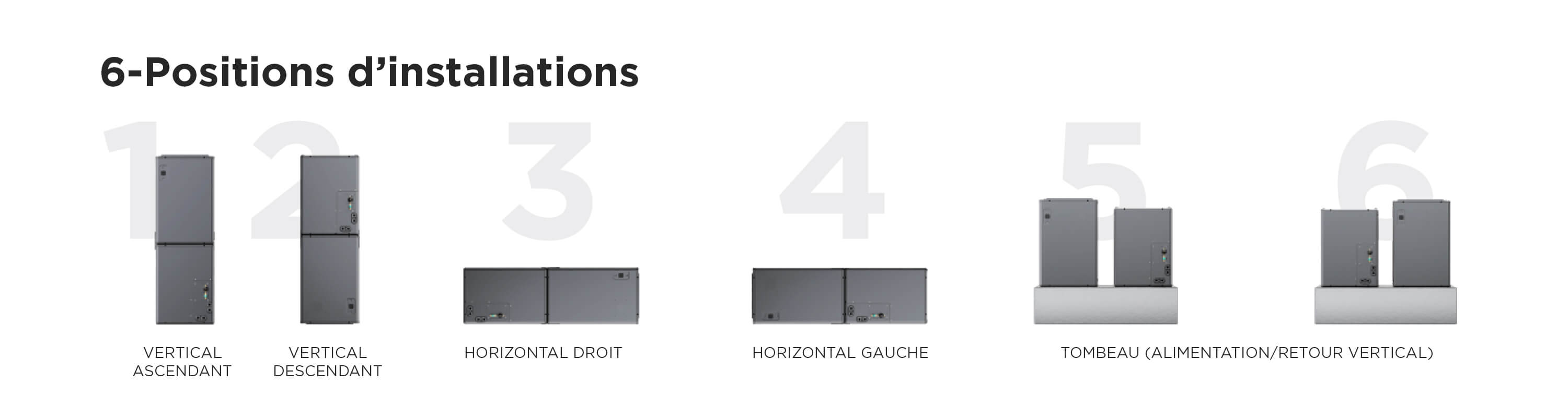 La structure de l'unité avec un ventilateur horizontal et un échangeur de chaleur vertical garantit une vitesse d'échange de chaleur plus uniforme et plus efficace sur toute la surface de l'échangeur de chaleur.